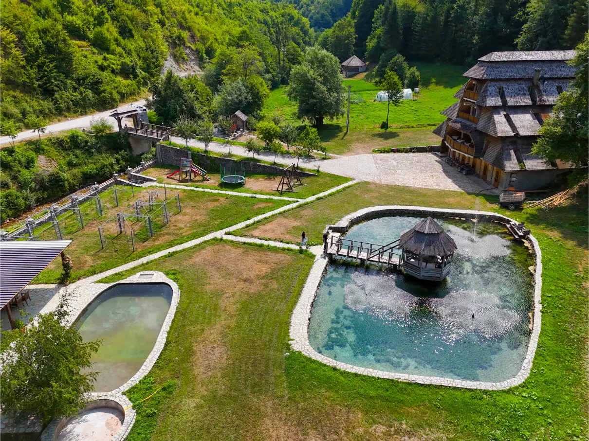 “OKA I PO” – veličanstveni hotel u etno-stilu, smjestio se u idiličnom selu Kaludra na izuzetno atraktivnoj lokaciji između planina i rijeke. Udaljen je samo 13 km od Berana. Savršeno se uklapa u ambijent, pri čemu njegov izgled asocira na okolinu.